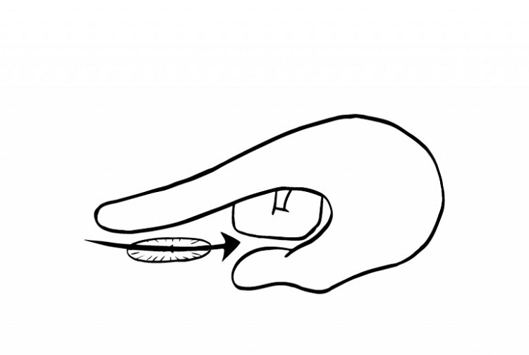Hai bàn tay thực hiện một massage hậu môn bằng cách vuốt xuống phía đưới hậu môn.