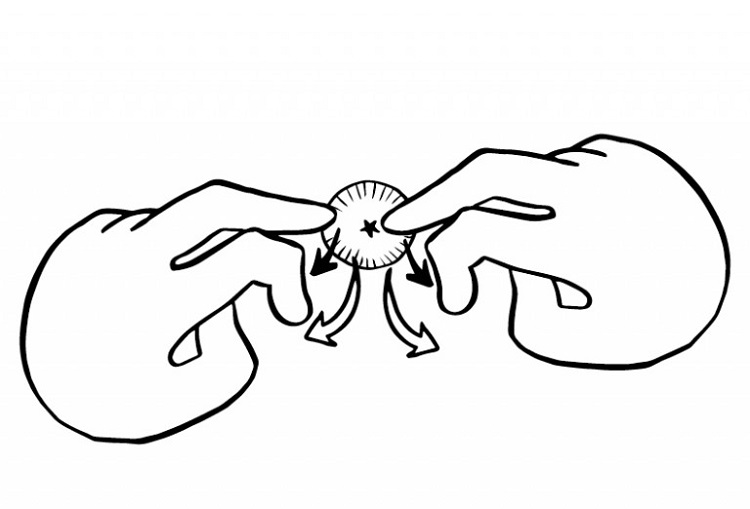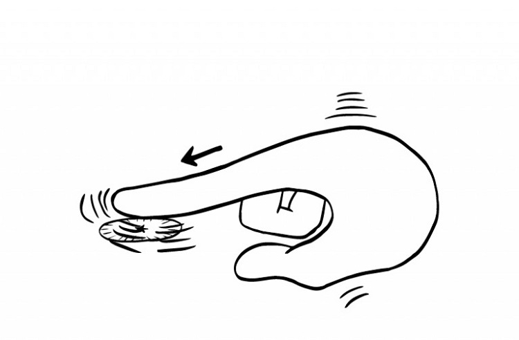 Hai bàn tay thực hiện một massage hậu môn bằng cách vuốt ngược massage ngược lên phía trên.
