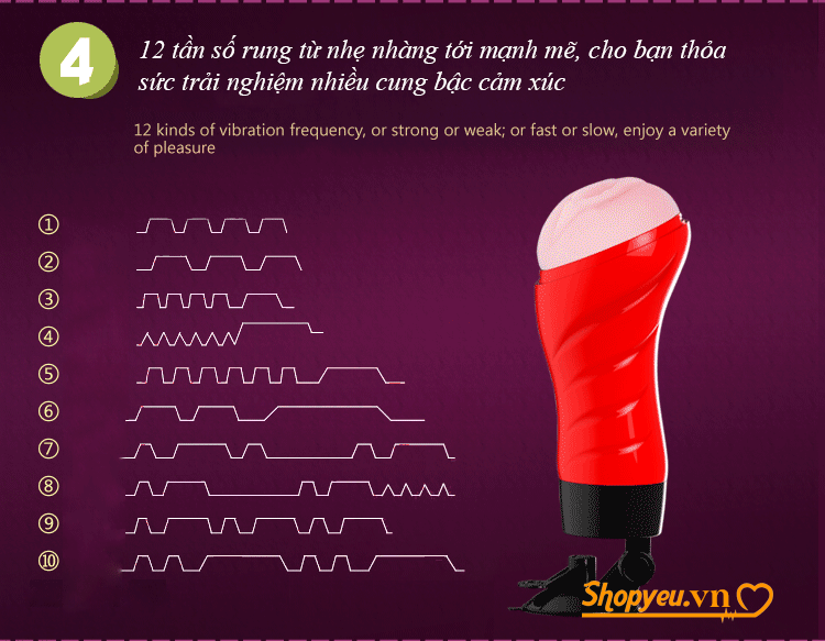 - Đặc điểm:có 12 chế độ rung, có gắn tường và có tiếng rên của phụ nữ