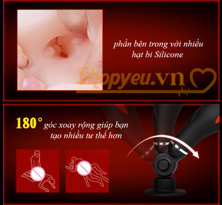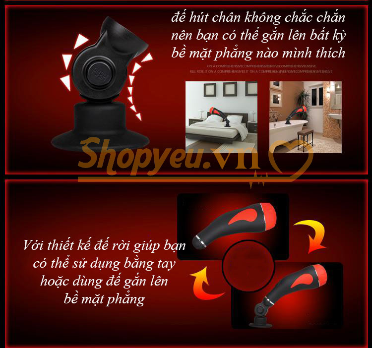 - Đặc điểm:có tới 30 chế độ rung khác nhau, có đế gắn tường và xoay được 180º tạo ra nhiều tư thế quan hệ khác nhau.