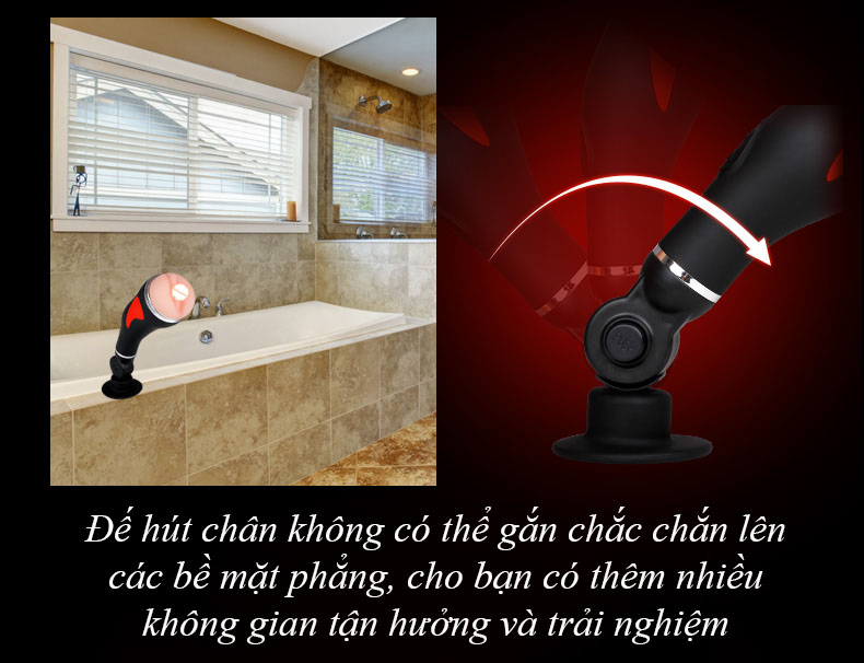 Âm đạo giả Young Cyclone có phần đế gắn tường hút chân không cao cấp, giúp cho sản phẩm có thể gắn được lên mọi bề mặt nhẵn. Cùng với chức năng xoay tới 180 độ sẽ giúp bạn tạo ra được nhiều tư thế khác nhau để trải nghiệm, mang lại cảm giác như đang quan hê với phụ nữ vậy. Nếu bạn không muốn gắn lên tường thì đèn pin gắn tường thủ dâm Young Cyclone có kích thước kiểu dáng nhỏ gọn bạn có thể sử dụng tay mình cầm sản phẩm để trải nghiệm.