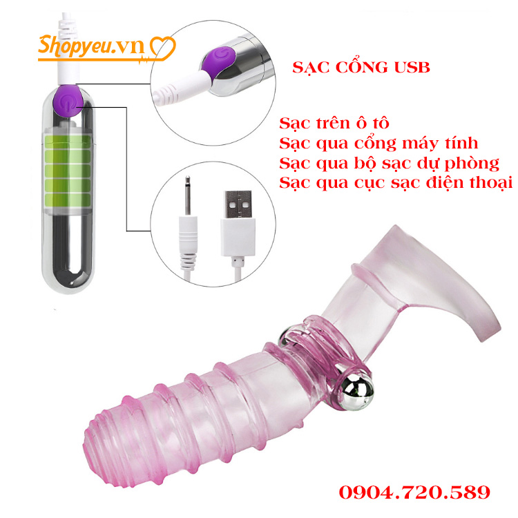 - Bộ bao gồm: 1 bao đeo ngón tay + 1 Cục rung siêu mạnh 10 chế độ + 1 cáp sạc USB