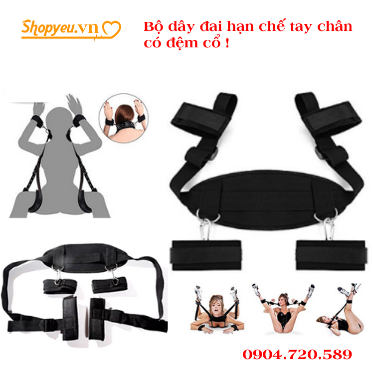 Đồ chơi SM bộ dây đai hạn chế tay chân đệm cổ là mẫu đồ chơi tình dục dành cho các cặp đôi nhàm chán trong chuyện chăn gối, muốn được trải nghiệm những điều mới mẻ mạnh bạo, ngông cuồng mà khao khát tình dục mang lại. Đây được xem là món gia vị không thể thiếu khiến cuộc sống tình dục trở nên hoàn hảo.
