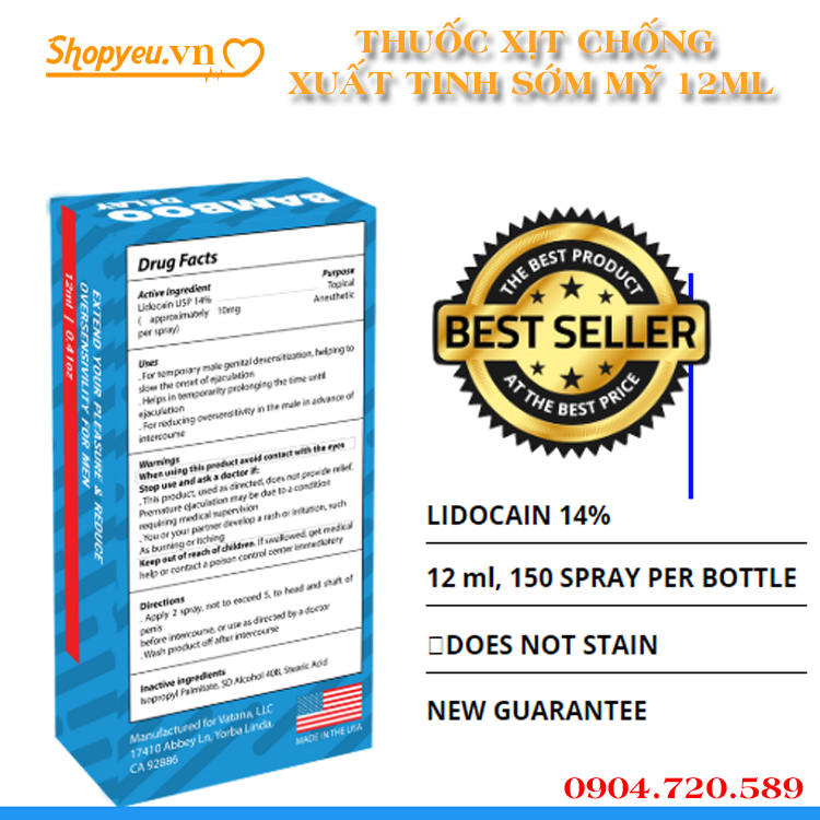 Hơn hẳn so với các loại xịt kéo dài thời gian quan hệ tình dục khác, Chai xịt bamboo delay spray 12ml có lượng Lidocaine USP tới 14% cao hơn hẳn. Lidocaine là thành phần giúp giảm bớt cảm giác tại dương vật giúp dương vật có sức chịu đựng tốt hơn mỗi khi quan hệ.