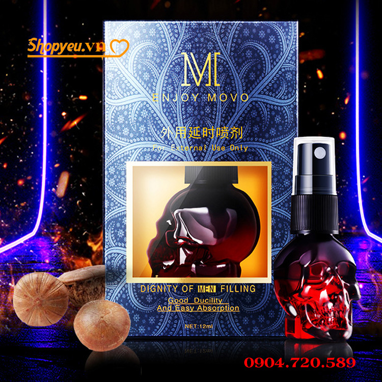 Chai xịt thảo dược chống xuất tinh sớm Movo mặt đầu lâu hoàn toàn phù hợp với những người đàn ông.