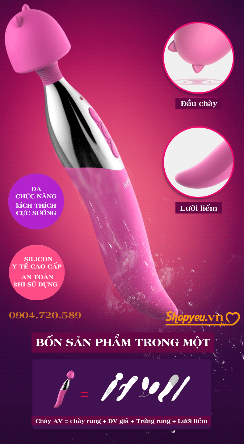 Chày rung AV 2019 Massage âm đạo, âm vật, điểm G, hậu môn là sản phẩm mới nhất của hãng Leten, được thiết kế với công nghệ cao đa chức năng. Sở hữu chày rung AV 2019 là bạn đang có trong tay dụng cụ thủ dâm nữ tốt nhất, hiện đại nhất hiện nay. Nó bao gồm 4 chức năng của 4 dụng cụ khác cộng lại như: Dương vật giả, chày rung, lưỡi liếm âm đạo và dụng cụ kích thích điểm G.