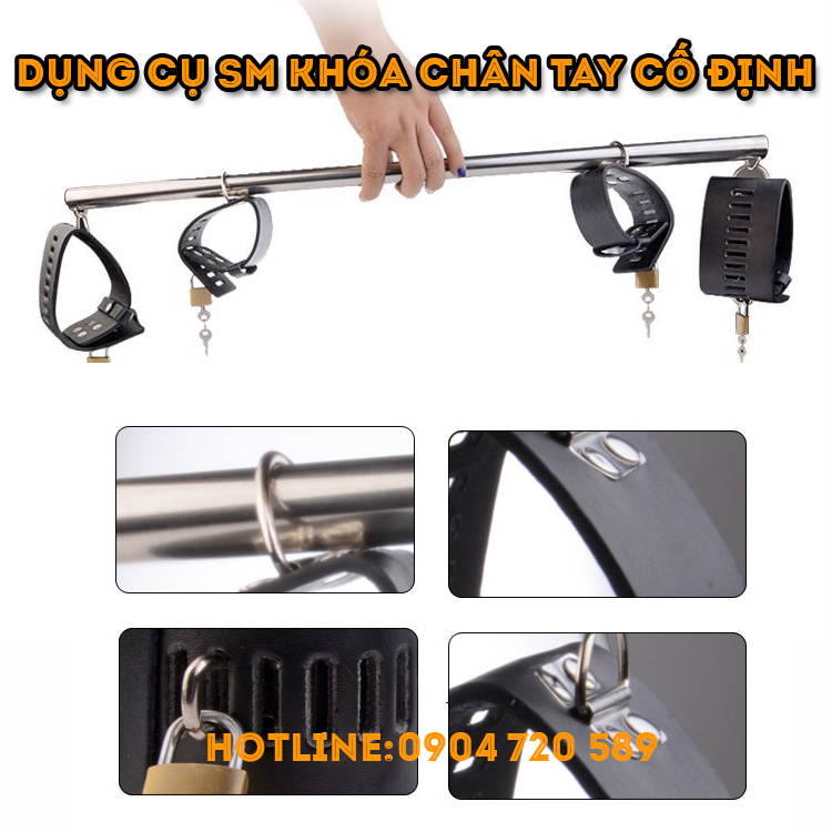 Dụng cụ SM khóa chân tay cố định với thiết kế độc đáo bằng một đòn sắt cố định tạo cho đôi bạn tư thế mới lạ đầy kích thích trong phòng the. Món đồ chơi tình dục này có 4 bộ khóa chân và tay được làm bằng da mềm mại, rất an toàn và không gây tổn hại hay làm xước da người sử dụng. Phần cố định được làm bằng thanh thép không gỉ kết hợp với dây xích móc đầy ấn tượng và nổi bật.