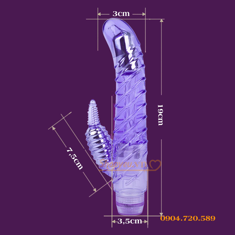 Dương vật giả cầm tay massage điểm G Jelly có kích thươc phù hợp với cơ địa phụ nữ Việt Nam, dương vật dài 19cm, nhánh phụ kích thích âm vật dài 7,5cm và có chu vi rộng 3cm. Được thiết kế với những đường gân xoắn chạy quanh từ cổ cho đến gốc của nó giúp mỗi lần thụt ra vào tạo bề mặt tiếp xúc lên thành âm đạo cho phụ nữ sự sung sướng tột đỉnh khó tả.