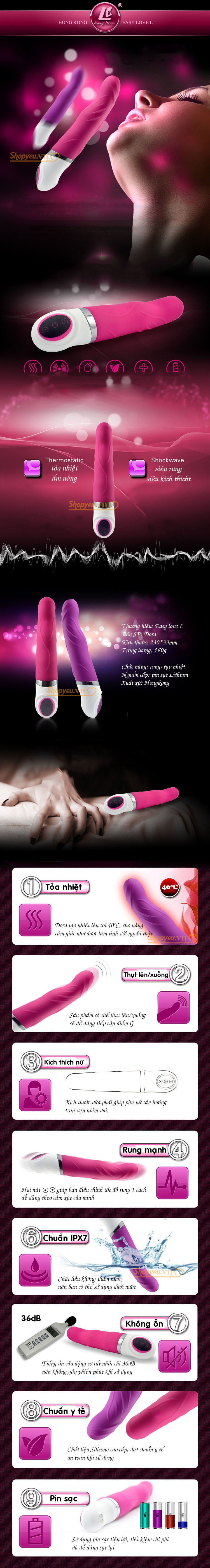 Với chất liệu Silicone siêu mềm mại, đạt chuẩn CE-EU, tuyệt đối an toàn cho người sử dụng. Chức năng rung kêt hợp thò thụt tự động dễ dàng tiếp cận điểm G của phụ nữ, Kiểu dáng và kích thước nhỏ gọn vô cùng tiện lợi mang theo bên mình để sử dụng.