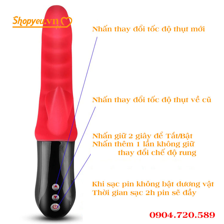 Mang trong mình tới 7 tốc độ thò thụt được gắn vào bên trong phần đầu dương vật tròn đầy hỗ trợ chị em lên đỉnh nhanh gọn. Mới đầu là rung từng cơn nhè nhẹ nhét dần vào lỗ âm đạo để tăng hưng phấn, sau đó đưa vào sâu hơn nữa rồi chuyển hẳn sang chế độ rung cực mạnh làm nàng phải rên lên vì sung sướng. Cứ thế nước nhờn sẽ tuôn chảy không kiểm soát