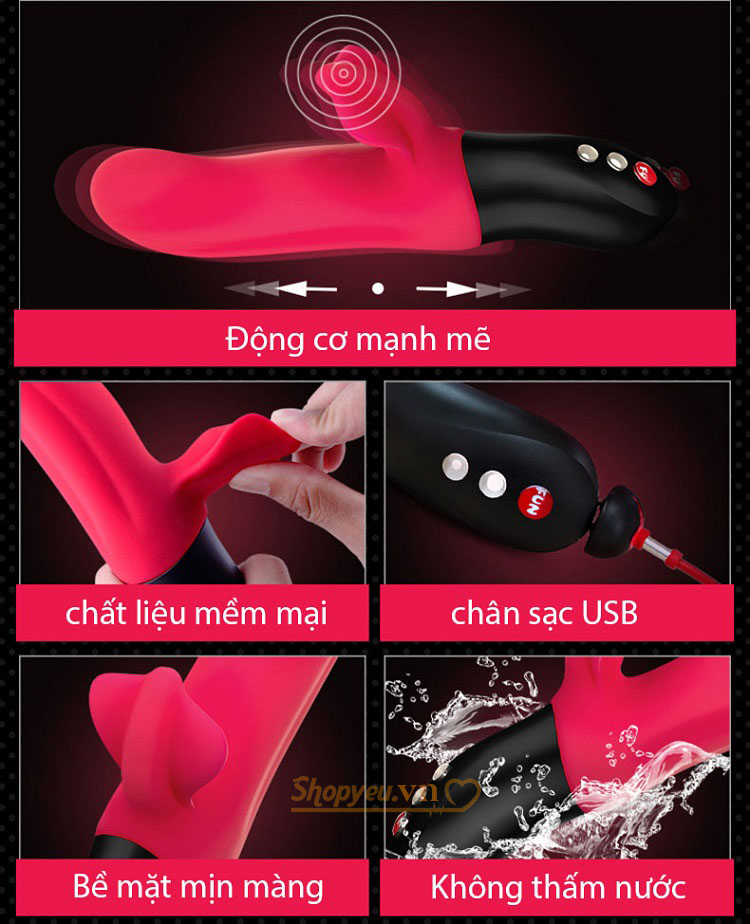 Dương vật giả cao cấp cá mập đỏ Fun Factory là một trong những loại đồ chơi tình dục cao cấp được nhập khẩu từ Đức. Dương vật giả đa năng cao cấp Fun Factory được thiết bằng chất liệu ABS bên ngoài được bao phủ bằng sillicone siêu mềm mại, bóng mịn. Với thân hình lực lưỡng như dương vật, phần đầu hơi phình to, phần thân nhỏ gọn hơn chút kết hợp với hai động cơ mạnh mẽ, một trên đầu nhánh phụ và một trên thân Fun Factor giúp kích thích sâu trong vùng kín, và cả bên ngoài của nó gợi lên sự kích thích sung sướng khó tả.