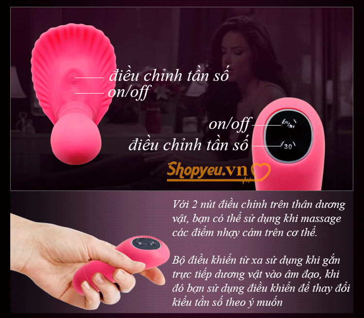 - Đặc điểm nổi bật : có 30 chế độ rung, gắn trực tiếp lên âm đạo và sử dụng điều khiển từ xa