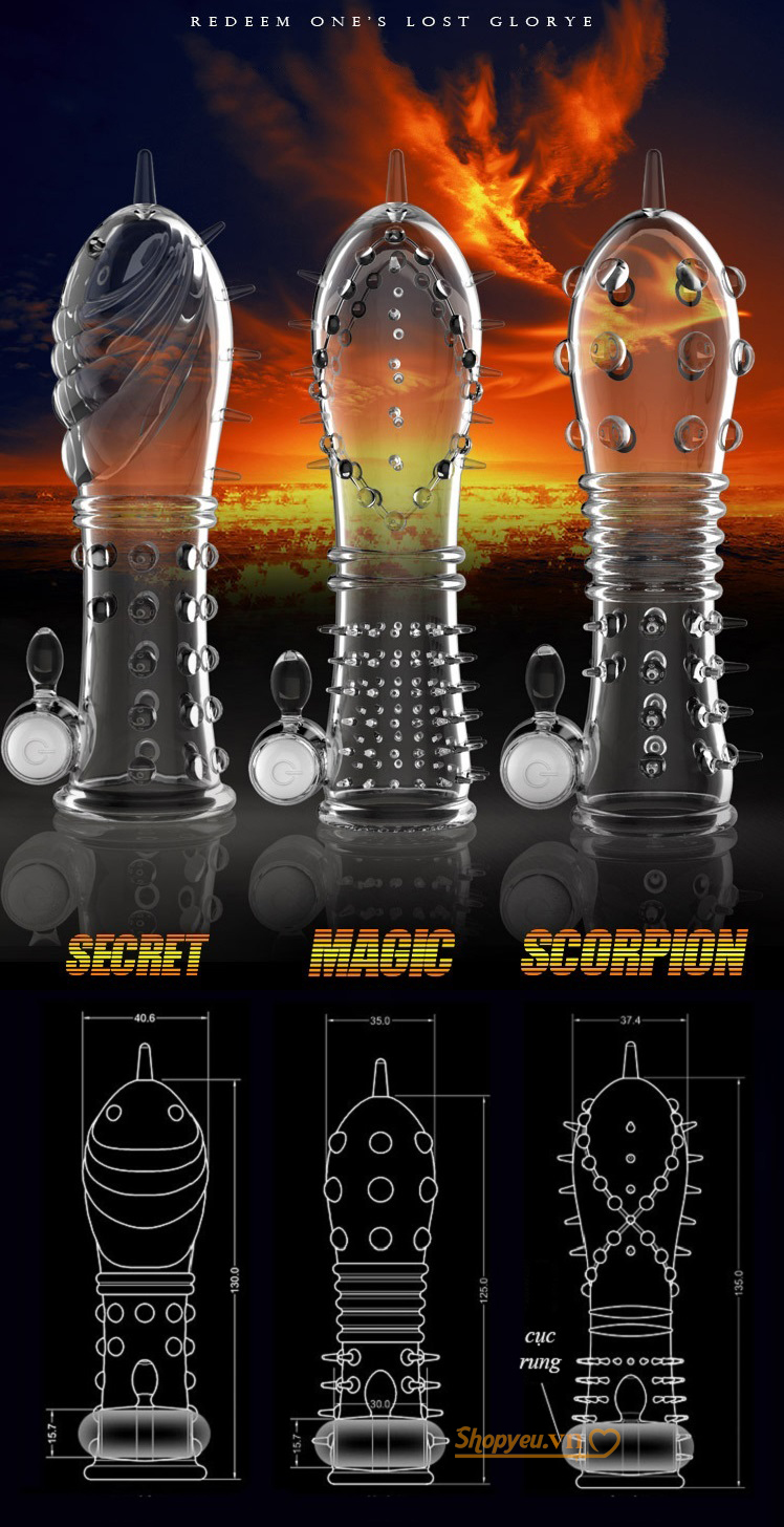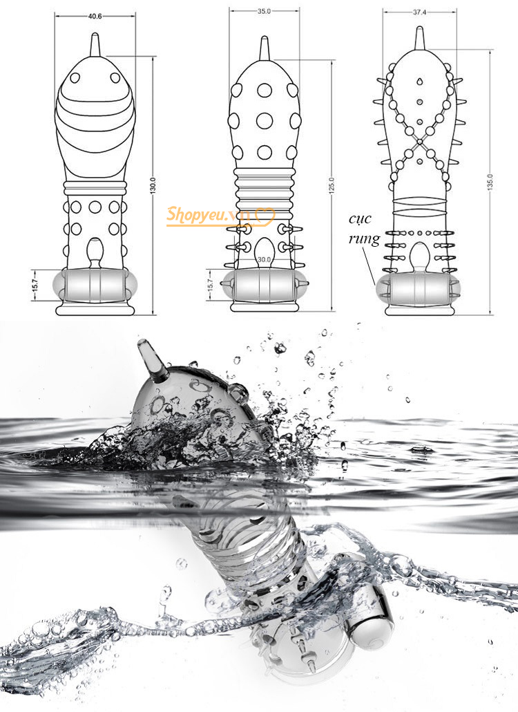 - Đặc điểm: Có rung phần gốc, toàn thân bao phủ gân, gai, bi tròn quanh bao, có thể tái sử dụng được nhiều lần.