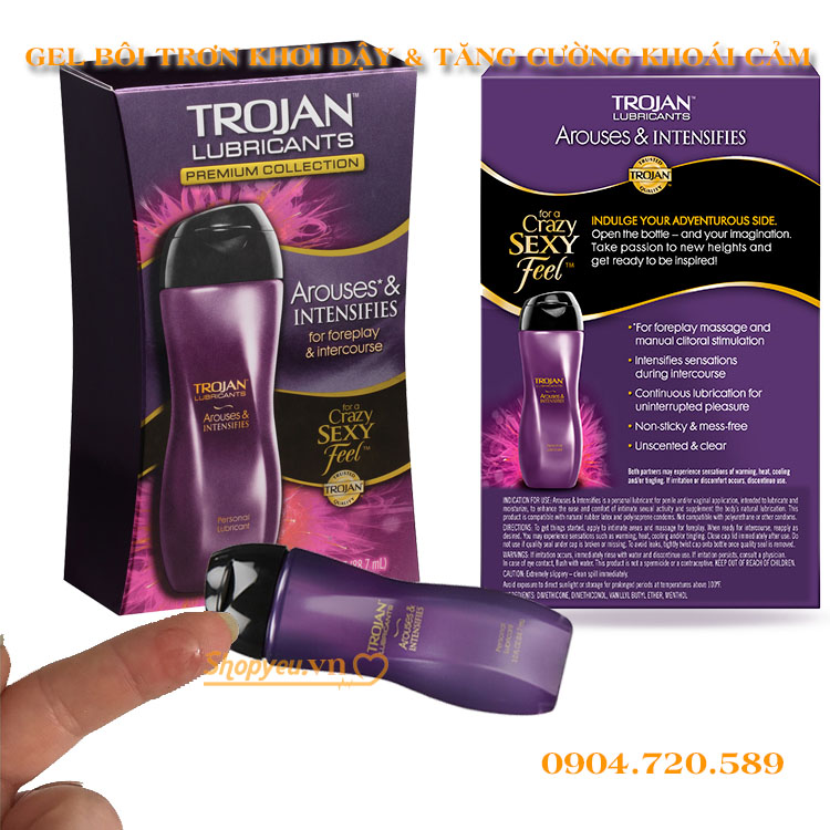Shop yêu có bán gel bôi trơn se khít, làm nóng âm đạo Trojan Arouses & Intensifies chính hãng. Sản phẩm thuộc loại gel bôi trơn gốc nước được nhập khẩu trực tiếp từ Mỹ đảm bảo độ an toàn tuyệt đối cho người sử dụng. Sản phẩm gel bôi trơn Trojan Arouses & Intensifies nhiều tính năng làm nóng, kích thích, se khít âm đạo mang đến cho bạn trải nghiệm khó thể quên ngay lần đầu tiên sử dụng.
