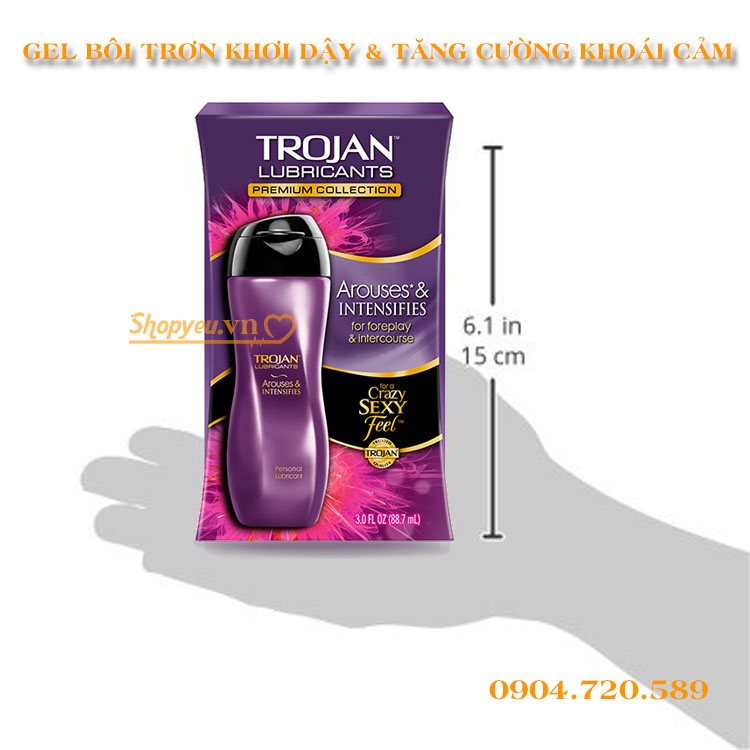 Gel bôi khơi dậy, tăng cường khoái cảm cho nữ Trojan Arouses & Intensifies được nhiều chị em phụ nữ yêu thích khi sử dụng và cả nam giới cũng cảm nhận được nhiều kích thích đến từ âm đạo. Khi dùng gel bôi trơn âm đạo được kích thích làm nóng và máu dồn về âm đạo nhiều hơn, tạo co thắt âm đạo tăng độ ham muốn tình dục và kích thích ham muốn tình dục cho phụ nữ mãnh liệt hơn. Sản phẩm giúp xóa tan tình trạng lãnh cảm ở phụ nữ và xóa tan đi cảm giác quan hệ tình dục thường ngày nhàm chán bằng cách kích thích mới lạ và nhiều hưng phấn hơn mỗi lần quan hệ tình dục.