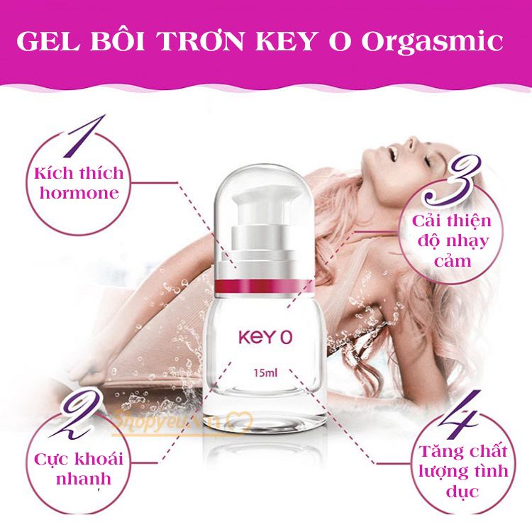 Gel bôi trơn KEY O Orgasmic giúp tăng cường khoái cảm cho phụ nữ là sản phẩm của Mỹ. Gel bôi trơn Key O được phát triển bởi chuyên gia sản khoa người Mỹ Tiến sĩ Ronald J. Thompson, sản phẩm đã được thử nghiệm với hàng chục nghìn tình nguyện viên nữ trên khắp thế giới.