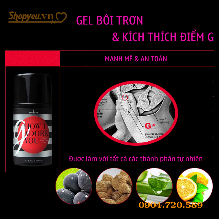 Gel bôi trơn kích thích điêm G, How I Adore You là sản phẩm của hãng Sensuva Mỹ, với chức năng tăng cường mới giúp phụ nữ tìm thấy vị trí sướng của riêng mình và tận hưởng nhiều cực khoái tại điểm G hơn !