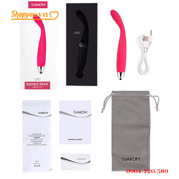 Sản phẩm gồm : 1 máy rung Mini Svakom, 1 dây sạc, 1 sách hướng dẫn sử dụng