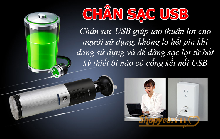 - Nguồn cấp: Pin liền theo máy và sạc điện, cổng sạc USB tiện lợi.