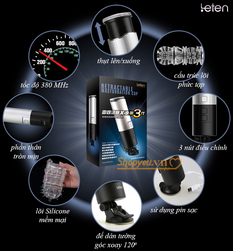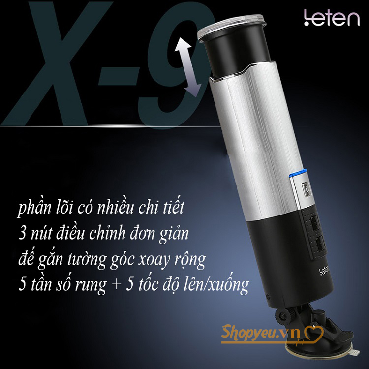 Máy thủ dâm tự động cao cấp X9 có khả năng thụt lên xuống với 5 chế độ rung và 5 tốc độ khác nhau đem lại cho người sử dụng tha hồ trải nghiệm cảm giác kích thíc lên dương vật của mình. Không dừng ở lọa âm đạo giả này còn có thêm đế gắn lên tường, bề mặt nhẵn giúp tạo ra được nhiều tư thế khác nhau để thủ dâm, luyện tập cho cậu nhỏ của mình ngày càng khỏe mạnh.