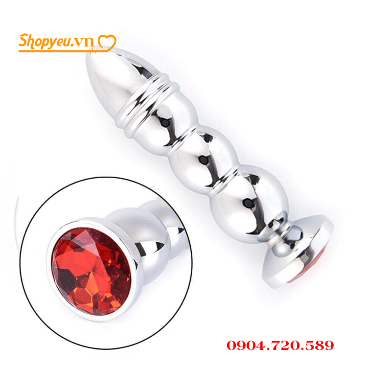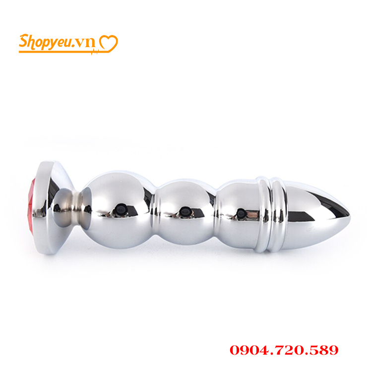 Kích thước : tổng chiều dài 14cm, chiều dài thực nhét vào hậu môn 12cm. Hai bi có đường kính lần lượt là 3cm và 3,5cm. Đường kính đế phích cắm là 4,3cm.