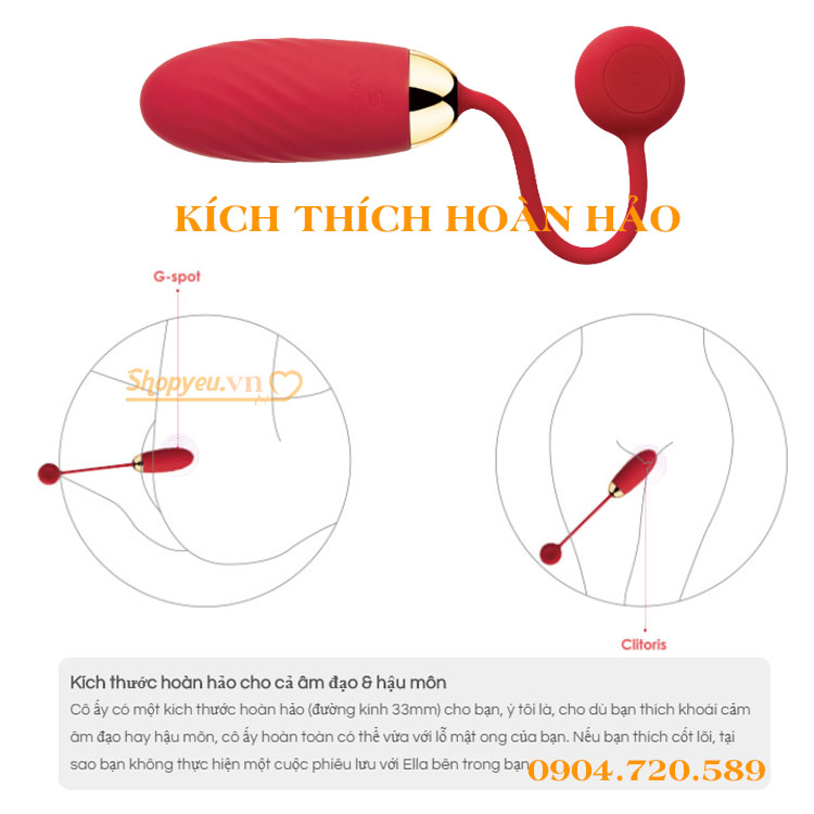 Đồ chơi tình dục trứng rung tình yêu cao cấp Ella được thiết kế với kích thước nhỏ gọn và rất tiện lợi cho người sử dụng ở bất kỳ bộ phận nào trên cơ thể. Sản phẩm có kích thước chiều dài 215mm, chiều dài thân trứng 85mm và chiều rộng 33mm, rất thuận tiện cho người sử dụng có thể dễ dàng đem theo bên người và tạo nhiều khoái cảm ở những không gian khác nhau. Ngoài kích thước thuận tiện cho di chuyển mang theo bên người trên thì đây cũng là kích thước lý tưởng để bạn sử dụng sản phẩm để kích thích điểm G âm đạo và hậu môn.