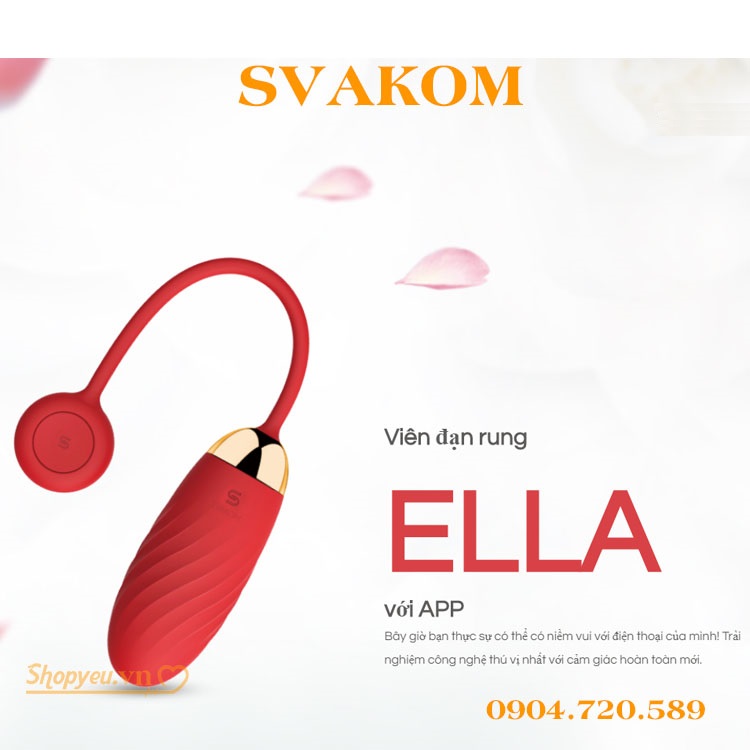 Trứng rung tình yêu cao cấp điều khiển bằng smartphone Svakom ELLA là đồ chơi tình dục cao cấp dành cho nữ kích thích âm đạo hoặc bộ phận nhạy cảm trên cơ thể. Sản phẩm dành cho phụ nữ thủ dâm giải tỏa sinh lý hoặc là dụng cụ hỗ trợ tình dục kích thích âm đạo trước khi quan hệ tình dục. Trứng rung tình yêu cao cấp được nhập khẩu chính hãng của hãng sản xuất Svakom đến từ Mỹ. Những sản phẩm cao cấp của hãng Svakom luôn được nhiều người chờ đón và đánh giá cao về chức năng và độ kích thích và nó đem lại.