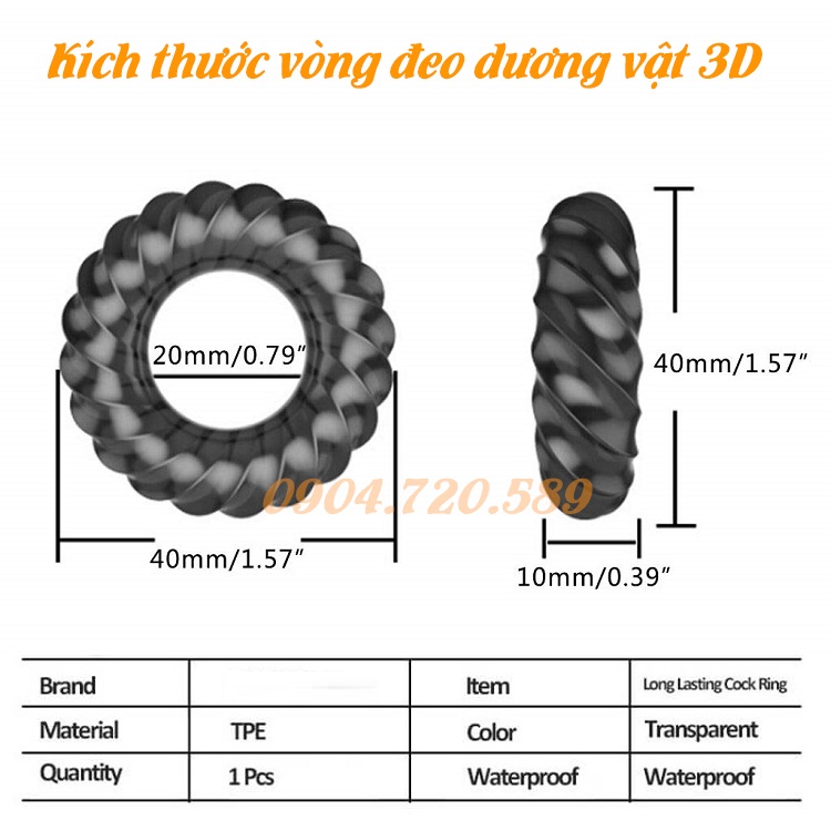 Vòng đeo dương vật 3D trì hoãn xuất tính sớm kéo dài thời gian quan hệ được sử dụng đeo vào dương vật hoặc bìu. Vòng đeo dương vật 3D sẽ giúp làm chậm lưu lượng máu từ mô dương vật khi đang cương cúng tạo ra sự trì hoãn khi xuất tinh ở nam giới. Do đó sẽ giúp duy trì sự cương cứng trong một thời gian dài, vòng giúp cho các chàng chống lại khả năng xuất tinh sớm tốt hơn.