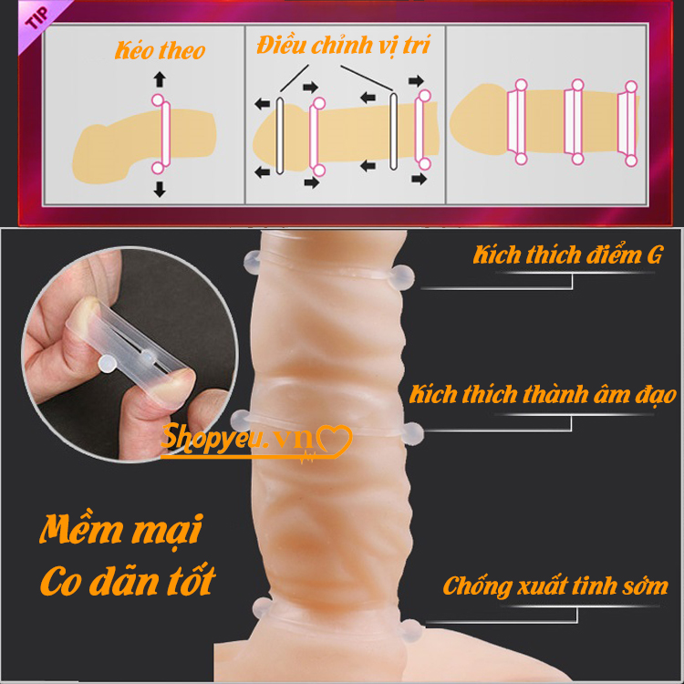 Rất đơn giản sản phẩm có thể co dãn được, bạn chỉ cần bóc vỏ đeo lên vị trí dương vật mà mình thích, sao cho mình có cảm giác thoải mái nhất để quan hệ là được.